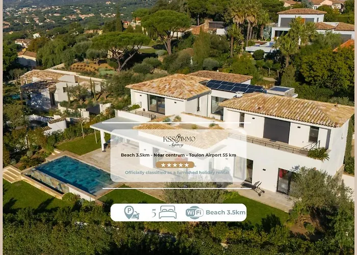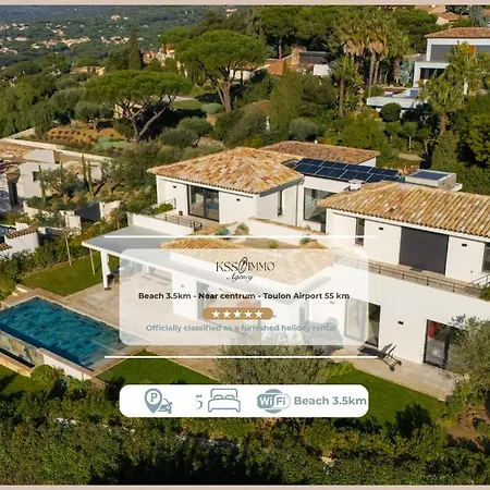 La Villa 350M2 - Vue Mer - Piscine - Clim - Parking Sainte-Maxime se encuentra a 4 km del Musée de la Gendarmerie et du Cinéma de Saint-Tropez y ofrece una piscina, lo que garantiza una estancia relajante.